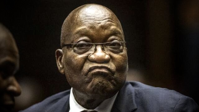 (FILES) In this file photo taken on October 15, 2019 South Africa's embattled former president Jacob Zuma (C) in the Pietermaritzburg High Court where he is appearing on corruption charges, in what would be the first time he faces trial for graft despite multiple accusations, in Pietermaritzburg. - Former South African President Jacob Zuma, was summoned on February 4, 2020 before the High Court in Pietermaritzburg for a preliminary hearing in his trial in an arms contract case. He did not show up, calling in sick. (Photo by Michele Spatari / POOL / AFP)