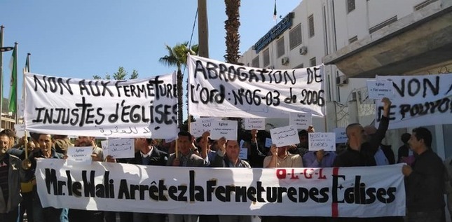 Selon la Constitution algérienne, les non-musulmans ne peuvent accéder aux postes les plus hauts du gouvernement. L’ordonnance 06/03 datant de 2006, « interdit les cultes non-musulmans en dehors de bâtiments préalablement agréés et criminalise tout ce qui pourrait ébranler la foi d’un musulman ». A contrario, les quatre diocèses catholiques d’Algérie bénéficient de la liberté de culte.