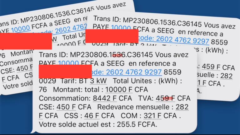 Pourtant exonérée du prix du gasoil industriel depuis janvier dernier, la Société d’énergie et d’eau du Gabon (SEEG) prélève toujours un nombre élevé de taxes sur chaque facture. Il s’agit de la Taxe sur la Valeur Ajoutée (TVA), la Contribution Spéciale Électricité (CSE), la Contribution Spéciale de Solidarité (CSS), la Contribution pour les Ordures Ménagères (COM) et la Redevance Mensuelle.