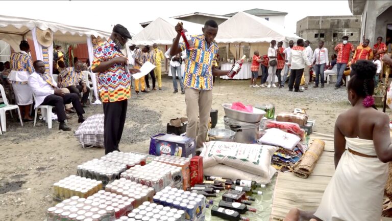 La remise de ce présent est souvent accompagnée de cérémonies festives où danses, chants et rituels traditionnels sont à l’honneur. Ces festivités sont l’occasion de célébrer l’union des deux familles et de rendre hommage aux ancêtres. Elles renforcent le sentiment d’appartenance à une communauté et perpétuent les traditions ancestrales.