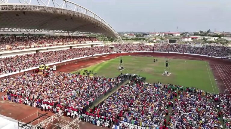 Dans la nuit du 5 au 6 juillet 2024, des milliers de fidèles chrétiens se sont rassemblés au stade de l’amitié d’Angondjé, à Libreville, pour une veillée de prière en préparation de la grande croisade d’évangélisation du prophète Chris Ndikumana, prévue samedi.