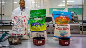 « Au regard des premiers résultats obtenus, nous n’avons constaté aucune anomalie. Il existe 5 types de riz à savoir : le riz paddy, le riz décortiqué, le riz usiné, le riz étuvé et le riz gluant », a affirmé le chef de service de laboratoire Contrôle Qualité à la DGCCRF Marc Joseph Ntchorere Bikinda.