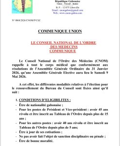 Le communiqué N° 0068/2026/CNOM, daté du 15 avril 2026, devait être une simple formalité administrative. Il est devenu l’étincelle d’une fronde qui couve dans les couloirs des structures sanitaires du pays. Si le renouvellement du Bureau est attendu depuis des années, le bureau sortant affichant une longévité record de plus de 20 ans, les modalités choisies pour ce scrutin passent mal auprès d’une grande partie de la corporation.