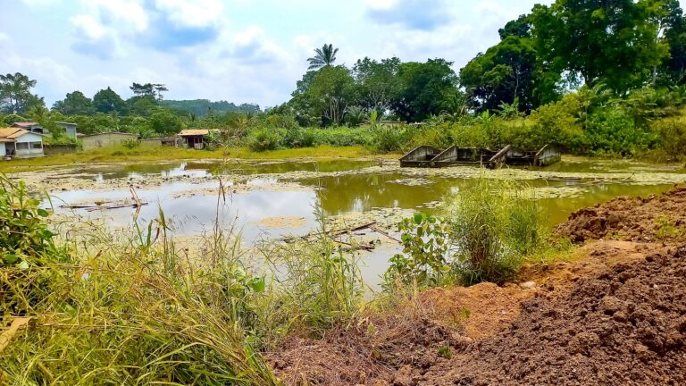 Quatre kilomètres plus loin, au PK 34, se trouve l’un des dalots les plus importants du chantier. Ce dernier a été construit spécialement pour assainir un lac situé à quelques mètres. Une maison inachevée, presque engloutie, est le témoin silencieux d’une zone qui jadis abritait des habitations. Ce lieu est inondé, à cause d’une absence d’évacuation d’eau. Cette étendue, qui selon les témoignages s’est développée au fil des années, pourrait s’agrandir davantage si rien n’est fait. Cet exemple montre l’importance de traiter la question de l’écoulement naval aux abords des infrastructures routières, car l’eau est l’une des causes de la dégradation de la chaussée.